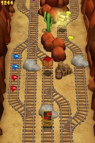 Using tilt controls the player must steer a minecart through a never ending maze of track while avoiding dead ends and deadly rock piles that have blocked the path. Along the way, gold and gem pickups can be collected to boost the players' score while a dynamite pickup can be used to blast your way through rock piles that are in the way; clearing the track for safe travel.